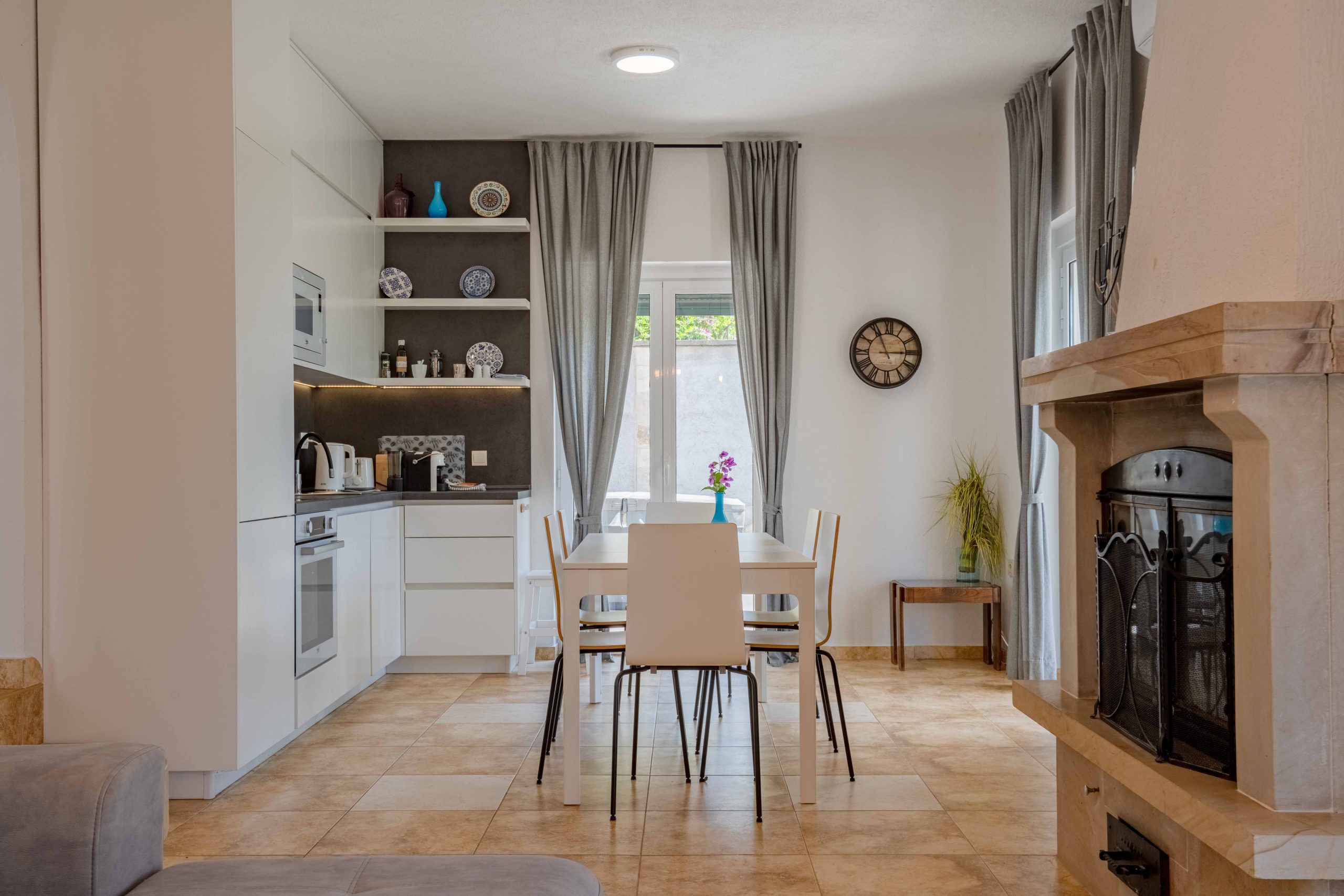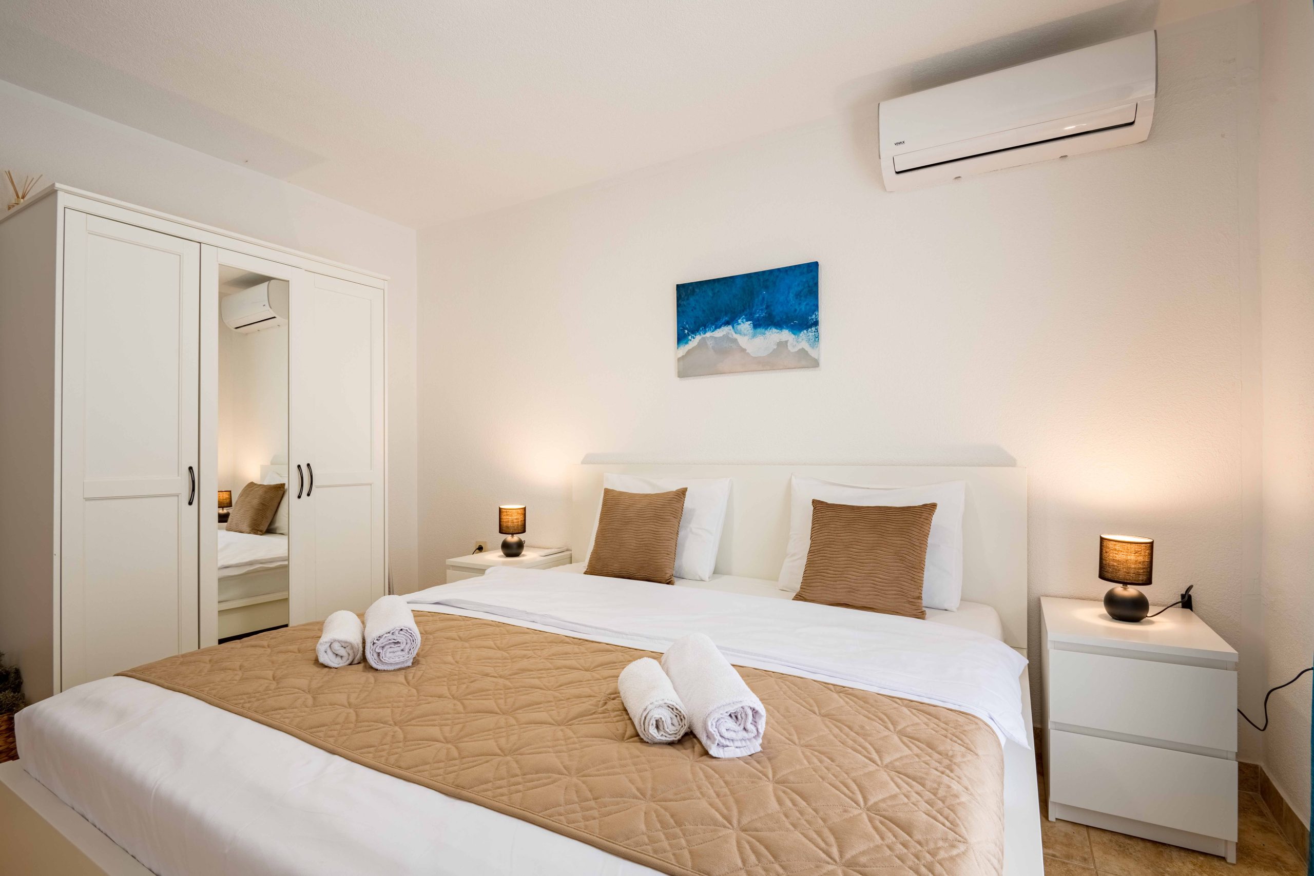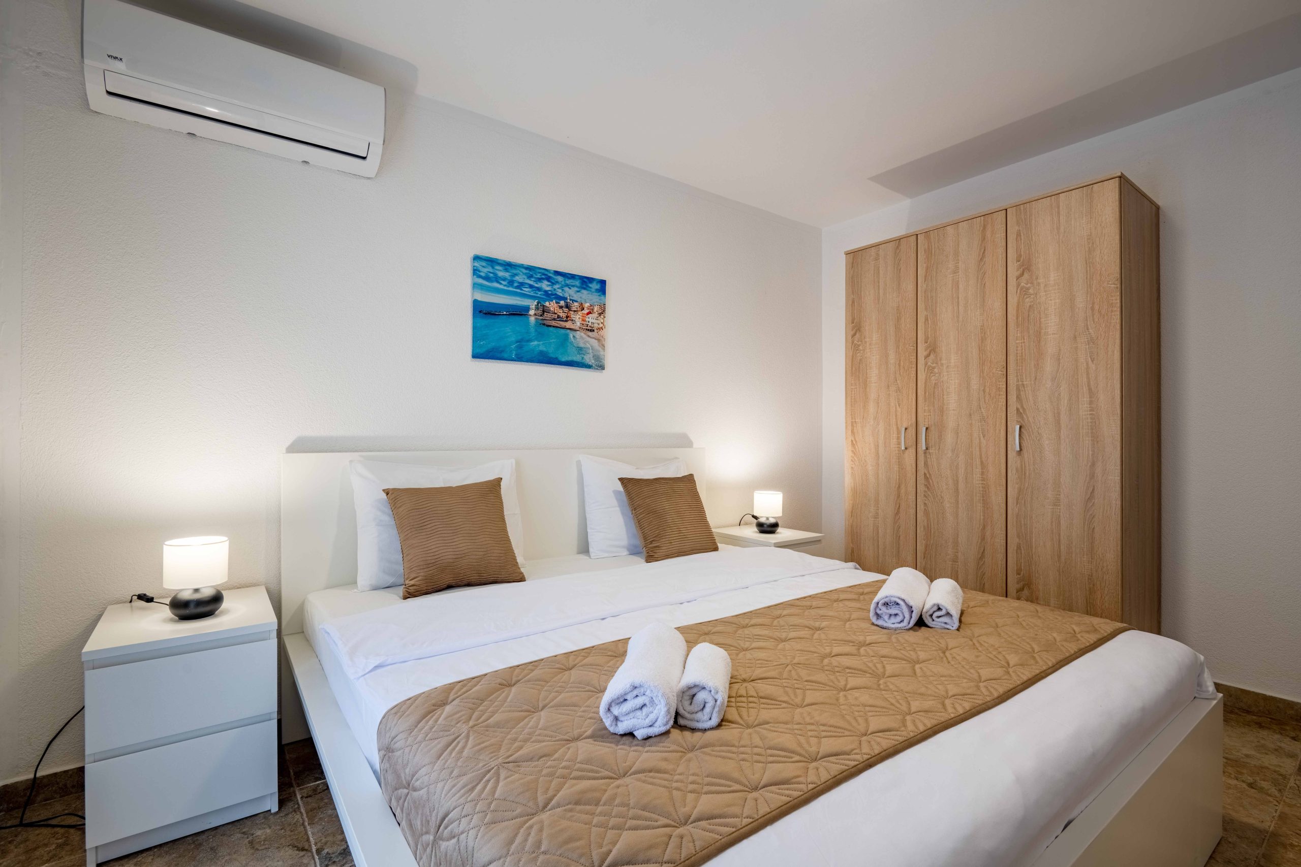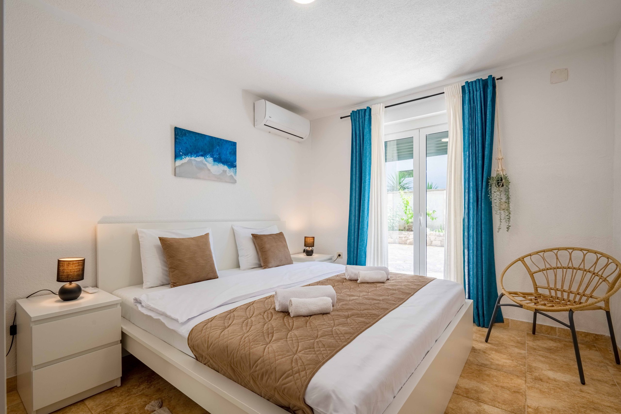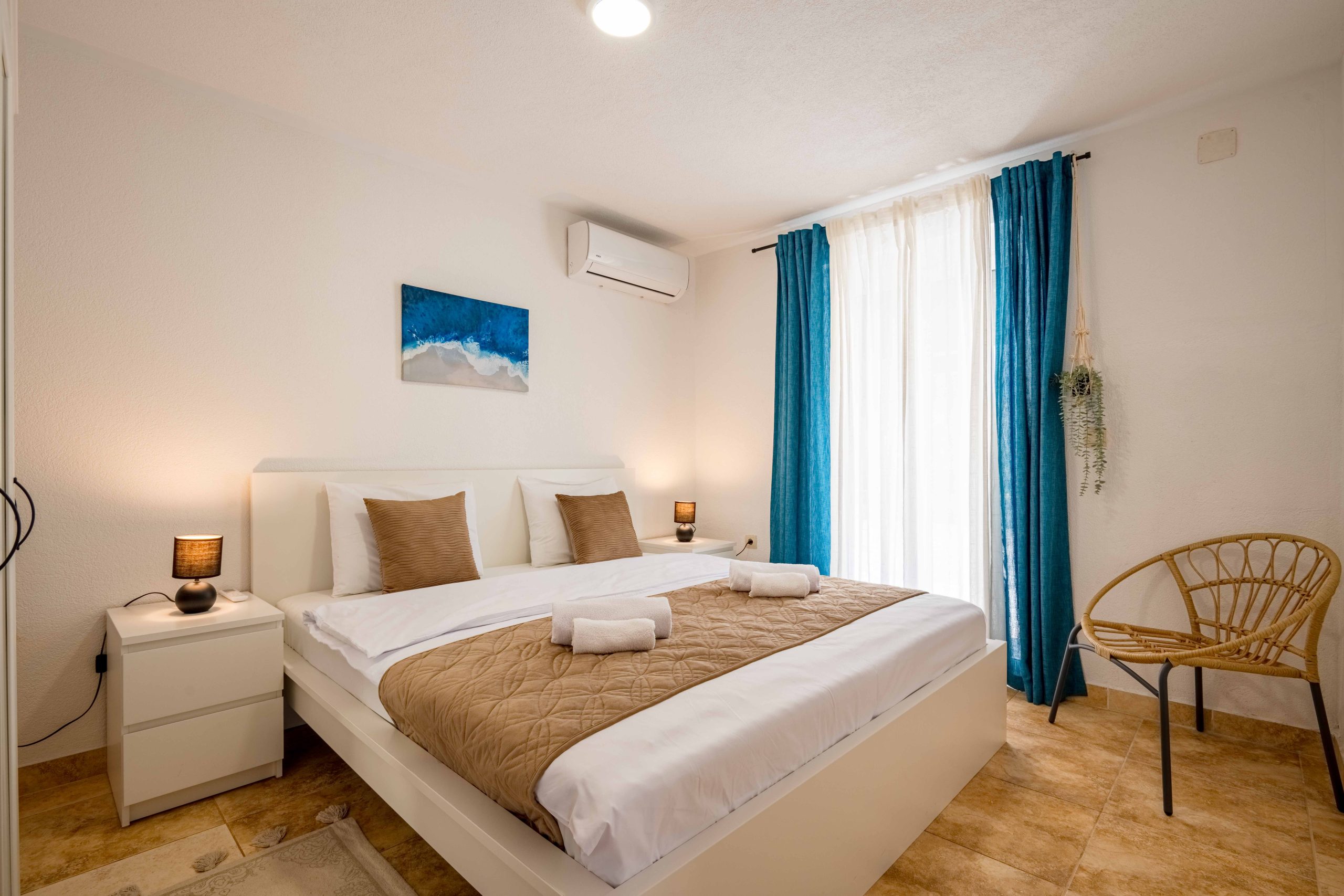 Ferielejligheden (stuen) har plads til op til seks personer. Den rummer to soveværelser med dobbeltsenge, mens der er yderligere to sovepladser på en sovesofa i stuen. Udenfor er der et lækkert fællesområde med lounge, som deles med de to øvrige lejligheder i Budva-huset, som er perfekt til afslapning efter en dag på stranden eller i byen.