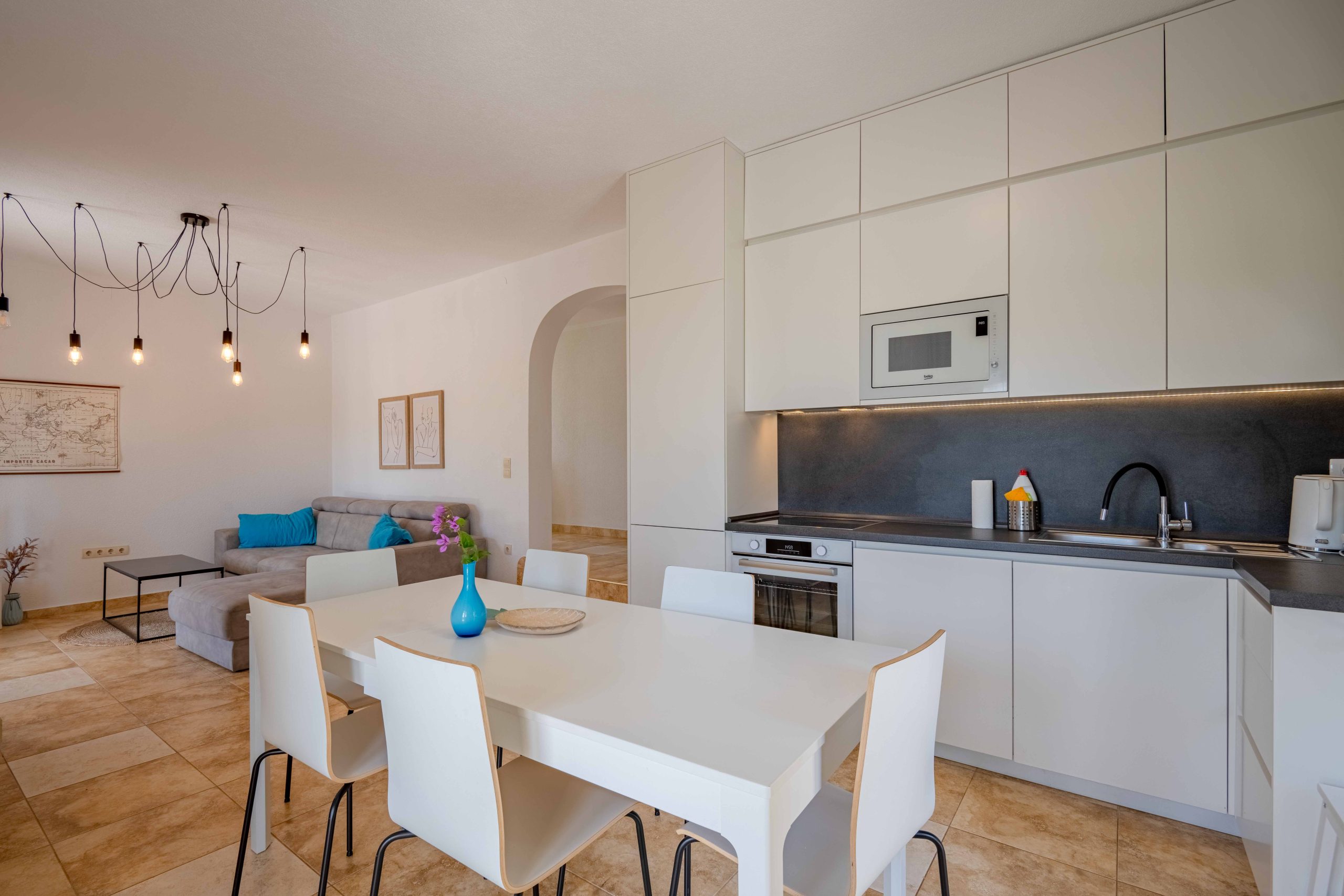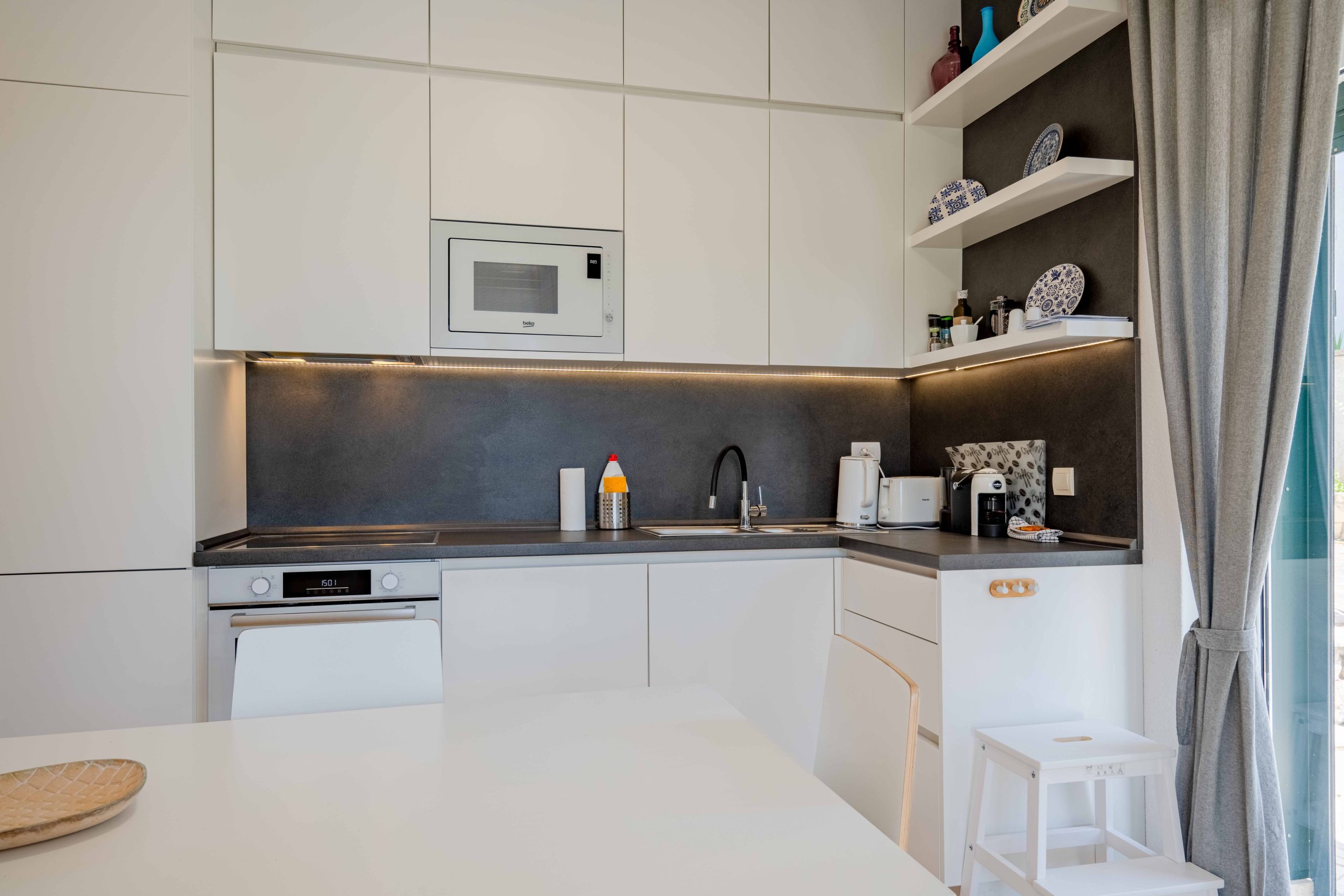 Fra stueetagen er der desværre ingen havudsigt – her skal man bo på 1. eller 2. sal for at nyde godt at husets fine panoramaudsigt. Fællesfaciliteter – lounge og jacuzzi – ligger lige op ad stuelejlighedens køkkenudgang og terrasse.
