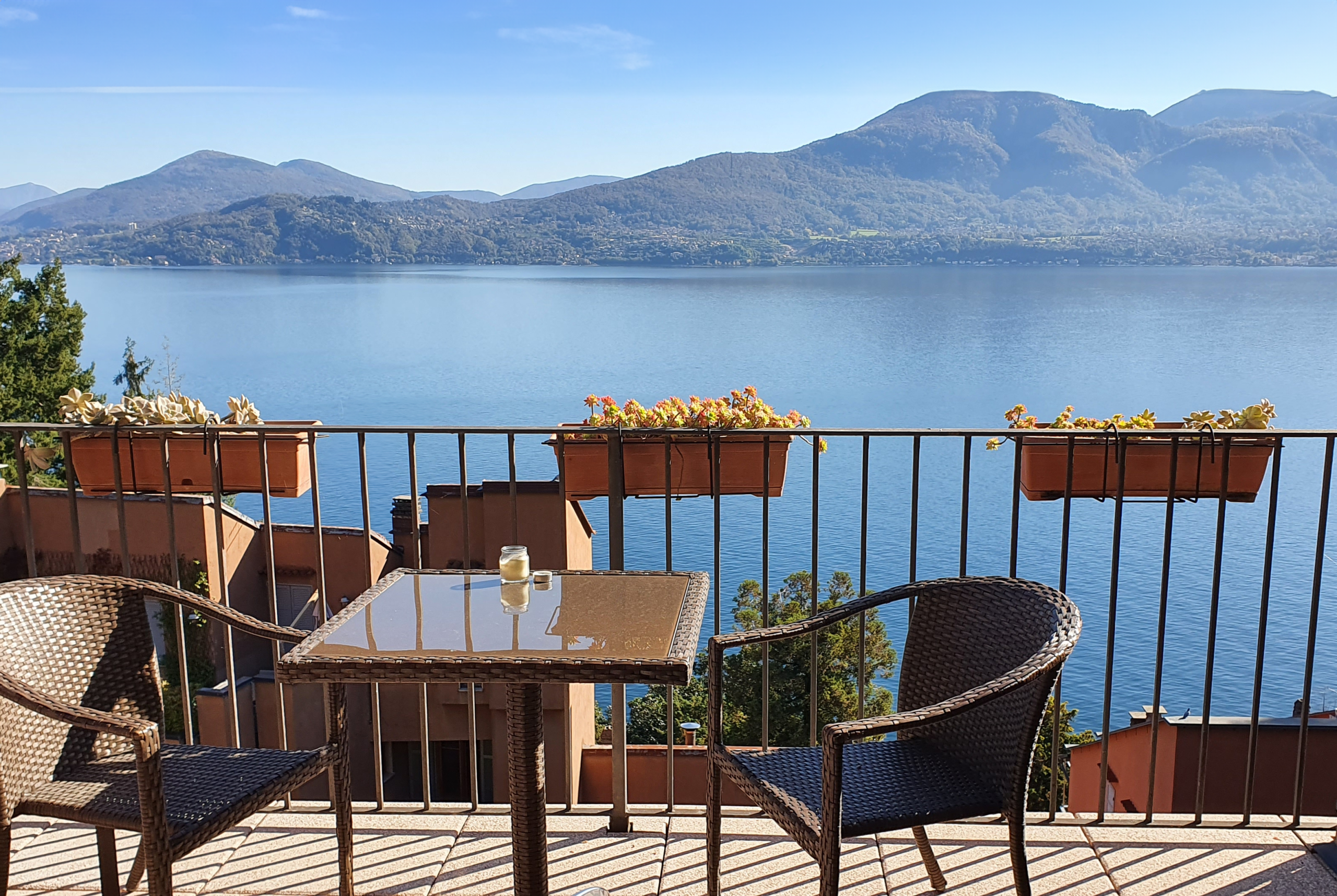 Rigtig skøn stor lejlighed med en ret fantastisk udsigt. Stedet og området er ikke for gangbesværede og en bil er et “must” for at komme rundt til de mange små byer langs søen. Indkøb kan med fordel foretages i Verbania (Esselunga) som er et “Bilka varehus” ligesom der i de fleste mindre byer er mange specialbutikker. “Must see´s” er Stresa og de Borromesiske øer, Villa Tanranto og et lokalt marked – evt i Cannobio.