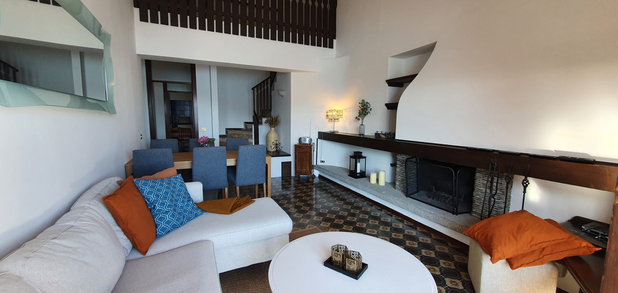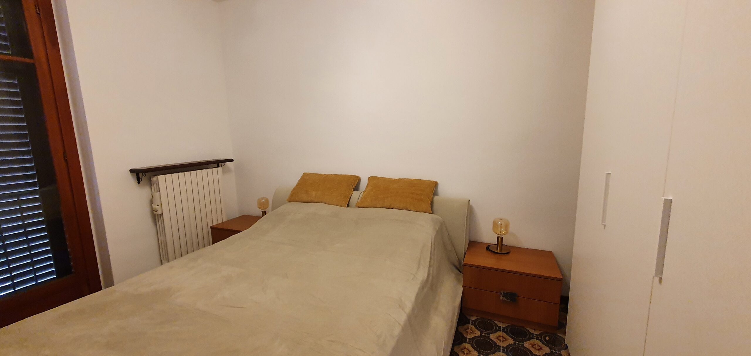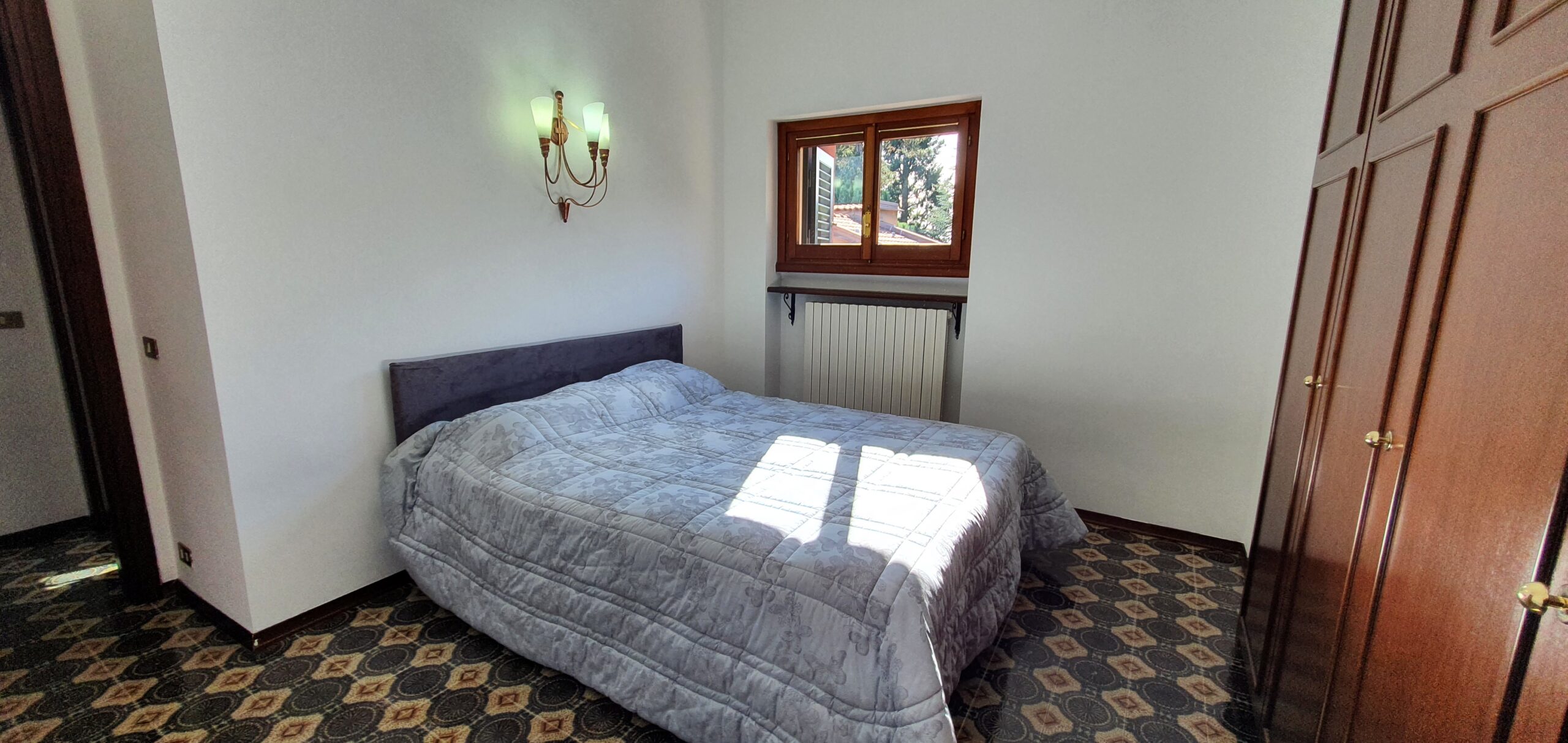 Lejligheden ligger på sjette sal i et feriekompleks og er fordelt på to etager. Her er tre soveværelser, to badeværelser og en stue. Det mindste værelse på første sal har to enkeltsenge, der lige nu står samlet som en dobbeltseng. Fra stuen er der adgang til en balkon med en fantastisk udsigt over Lago Maggiore.