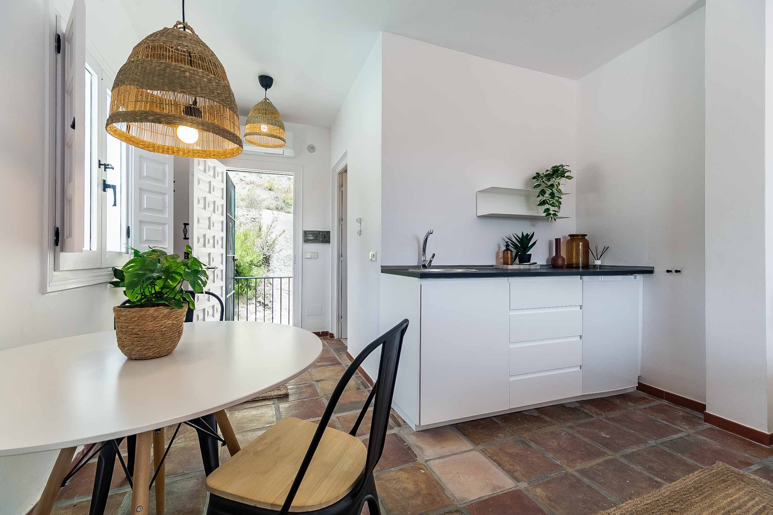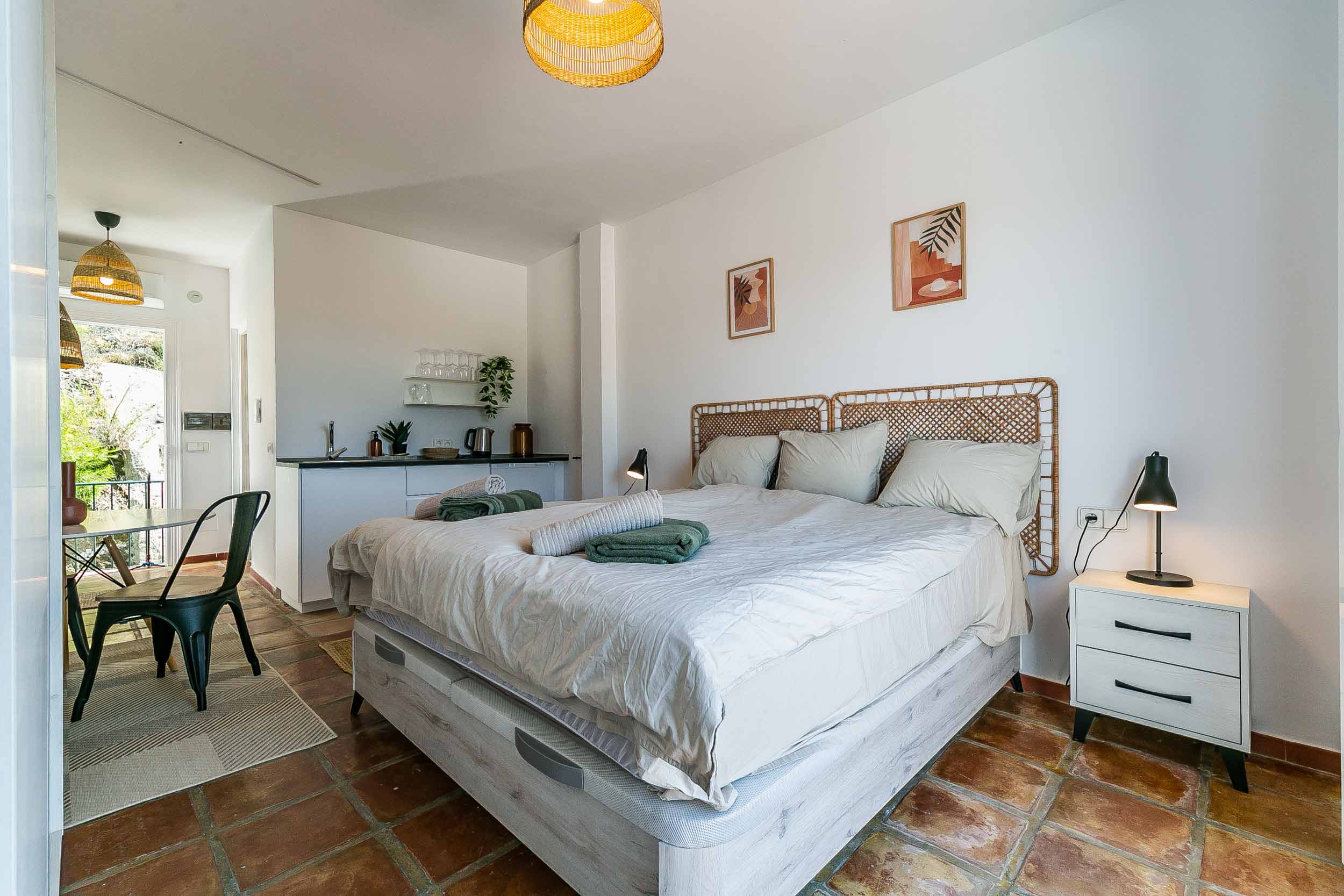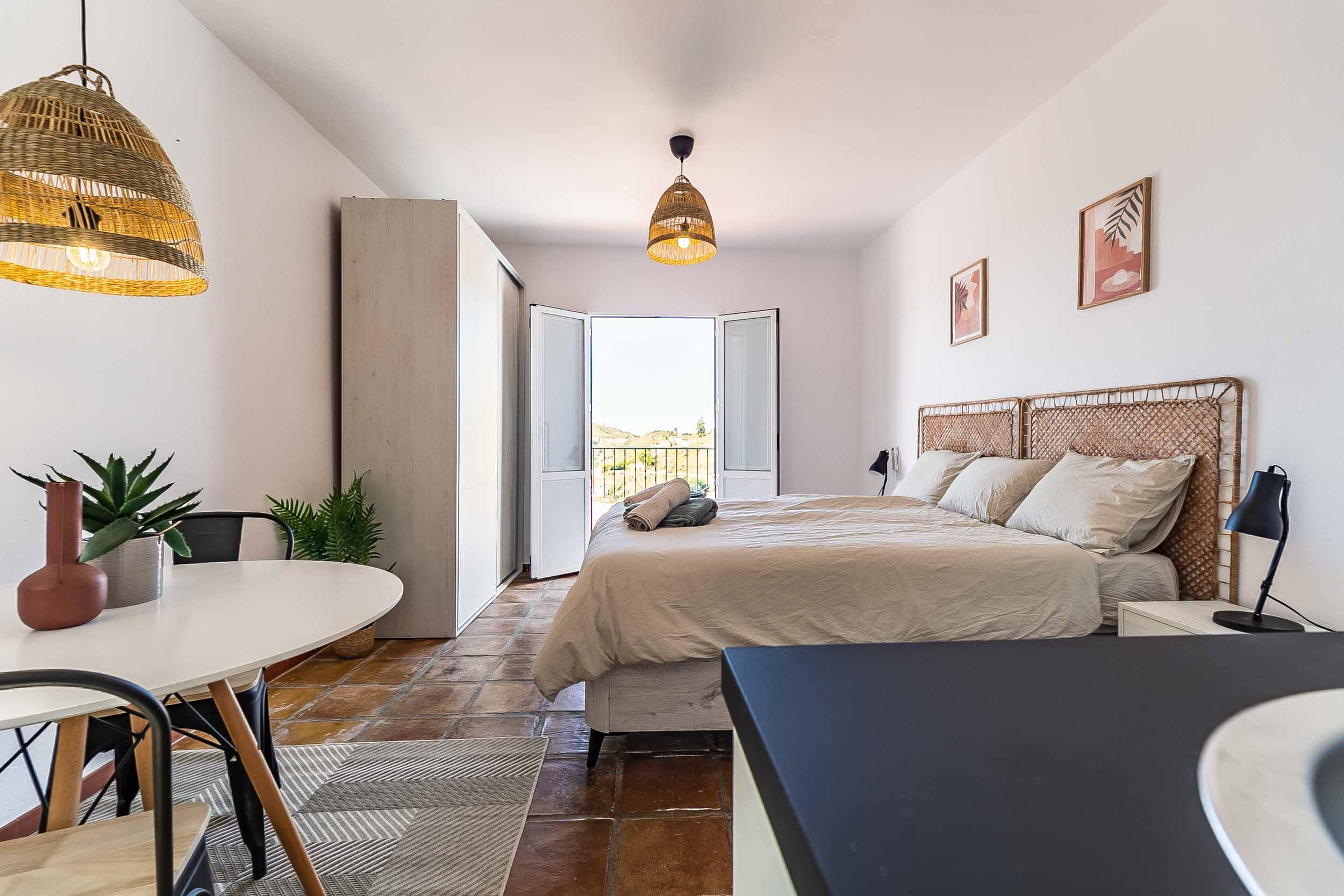 Midt i de andalusiske bjerge finder du den charmerende hvide landsby Cómpeta, som er en klassisk spansk bjergby fyldt med liv og atmosfære. Byens snoede gader gemmer på tapasbarer, vinbarer og små torve, hvor der fra tid til anden afholdes fest med live-musik. Når det sker, skal du blot følge lyden gennem byen, så ender du på torvet bag rådhuset, hvor både unge og gamle samles til en ægte spansk byfest. Med kun 1 minuts kørsel til byen eller en gåtur ad stierne ned gennem bjergene er du altid tæt på byens charme.