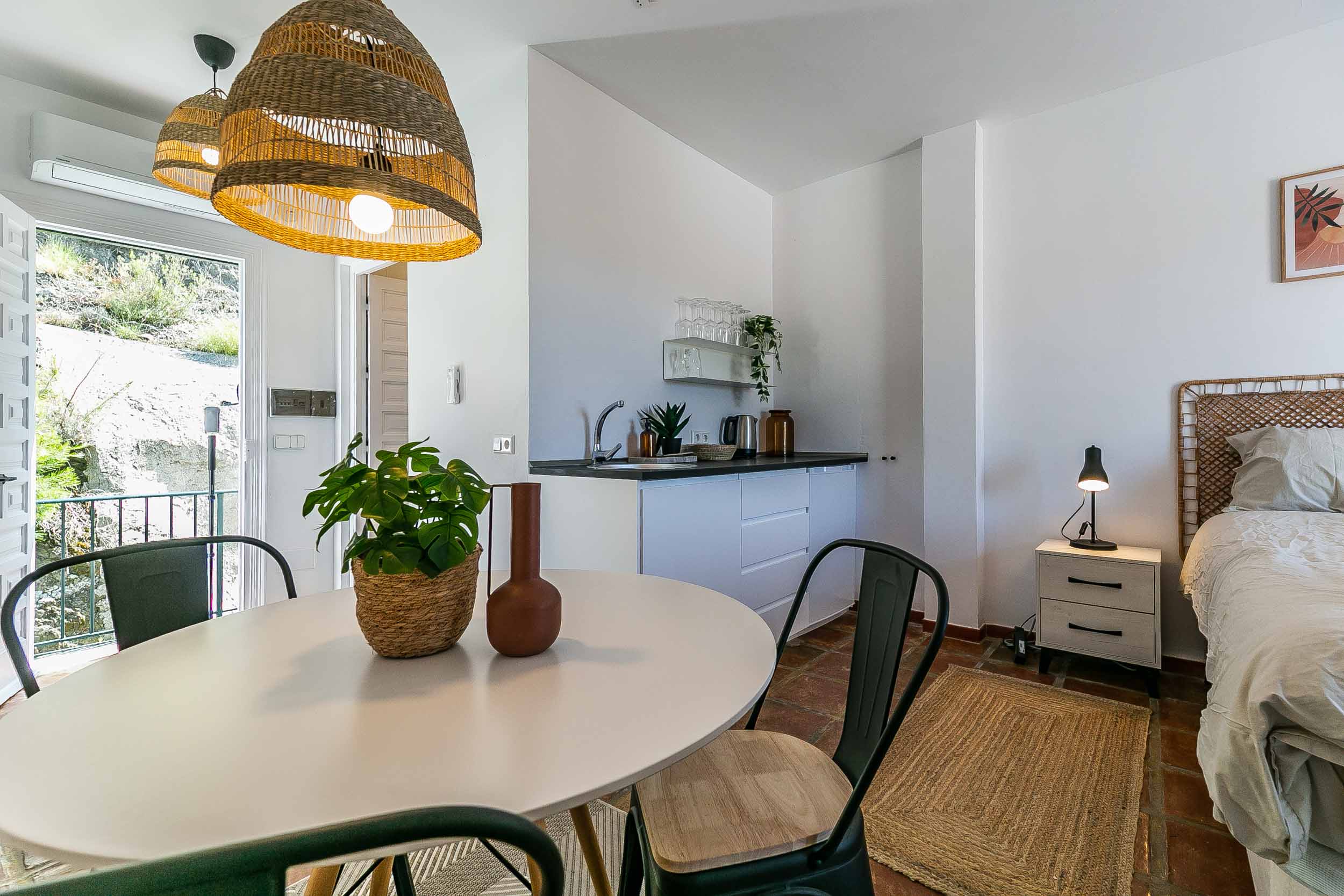 Både Malaga og Granada lufthavn ligger inden for rækkevidde af Hacienda Cómpeta, så du har fleksible rejsemuligheder. Med en lejebil kan du nemt opleve de charmerende byer i området eller køre til Middelhavet for en dag ved stranden.