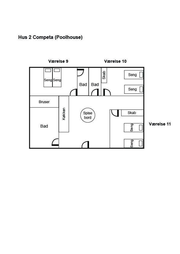 Værelser 9-10 og 11 i Pool-huset er de mindste værelser og har fælles te-køkken.