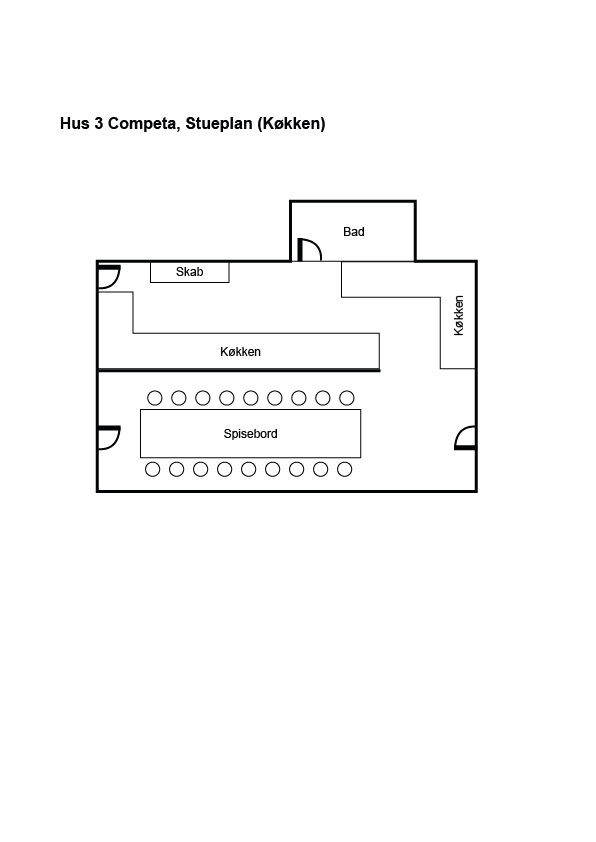 I det første hus finder du et stort fælles køkken med spisestue i underetagen, som er perfekt til fælles måltider. Huset har to værelser på første sal, som hver har eget badeværelse og tekøkken.