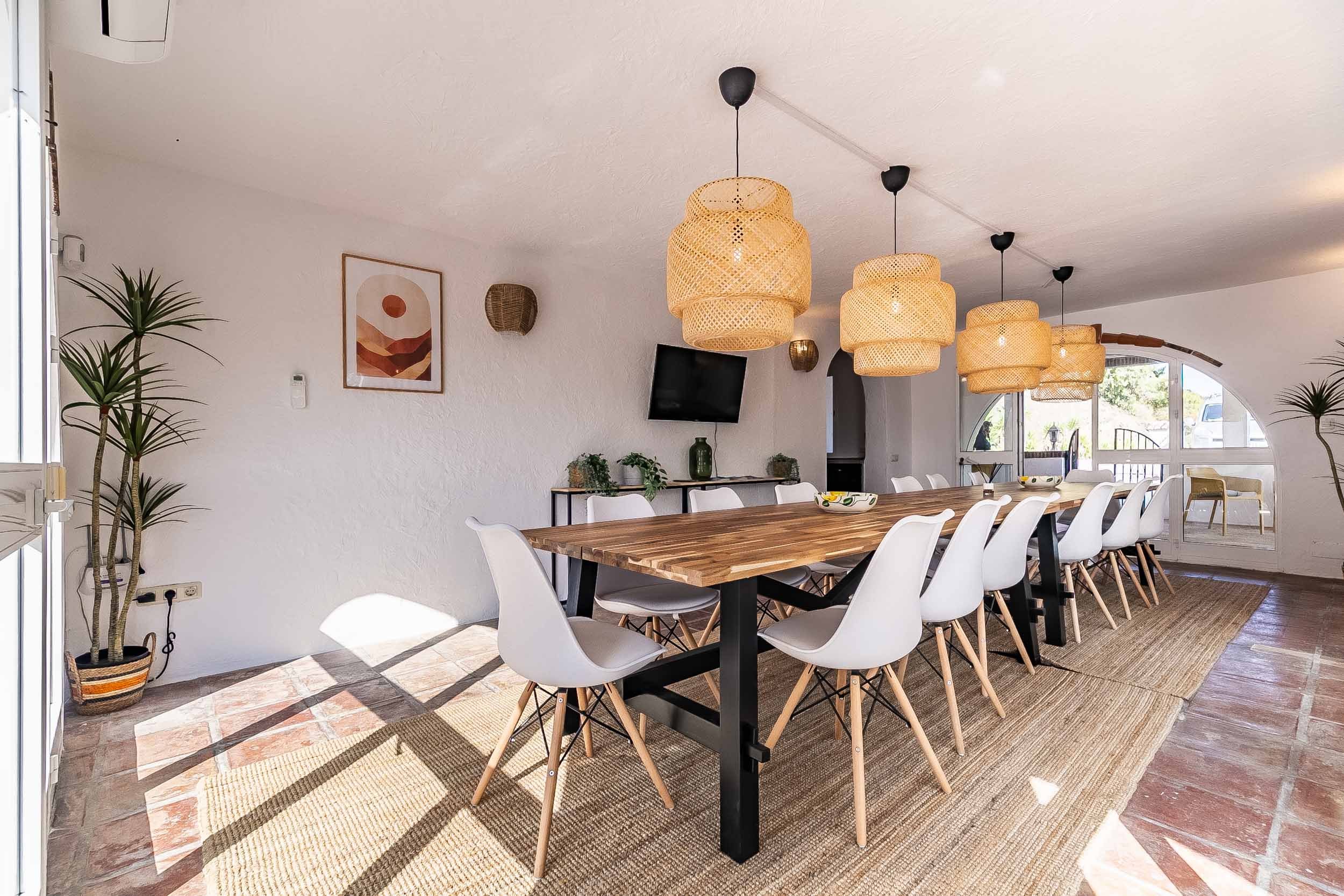 Virkelig dejlig hacienda med plads til den store familie eller venneflok. Meget lækker indrettet og med et rigtig dejligt udeområde omkring poolen med grillområde, loungeområde, spiseområde og plads til bordtennis og dart m.m. Det store og veludstyrede køkken rummer alt det service, der behøves til mange mennesker samt 2 køleskabe, 2 opvaskemaskiner og en stor fryser. Lejlighederne er alle lyse og venlige med tekøkkener og mange med udgang til altaner eller terrasse. 10 min. gang med gode bjergben til byen Competa med mange dejlige spisesteder og ægte spansk stemning på torvet. Der er lidt langt, hvis man vil til stranden ca. 1/2-3/4 times bjergkørsel, så derfor “kun” 4 stjerner for beliggenheden, der ellers er med helt fantastisk udsigt til bjerge og til Middelhavet.