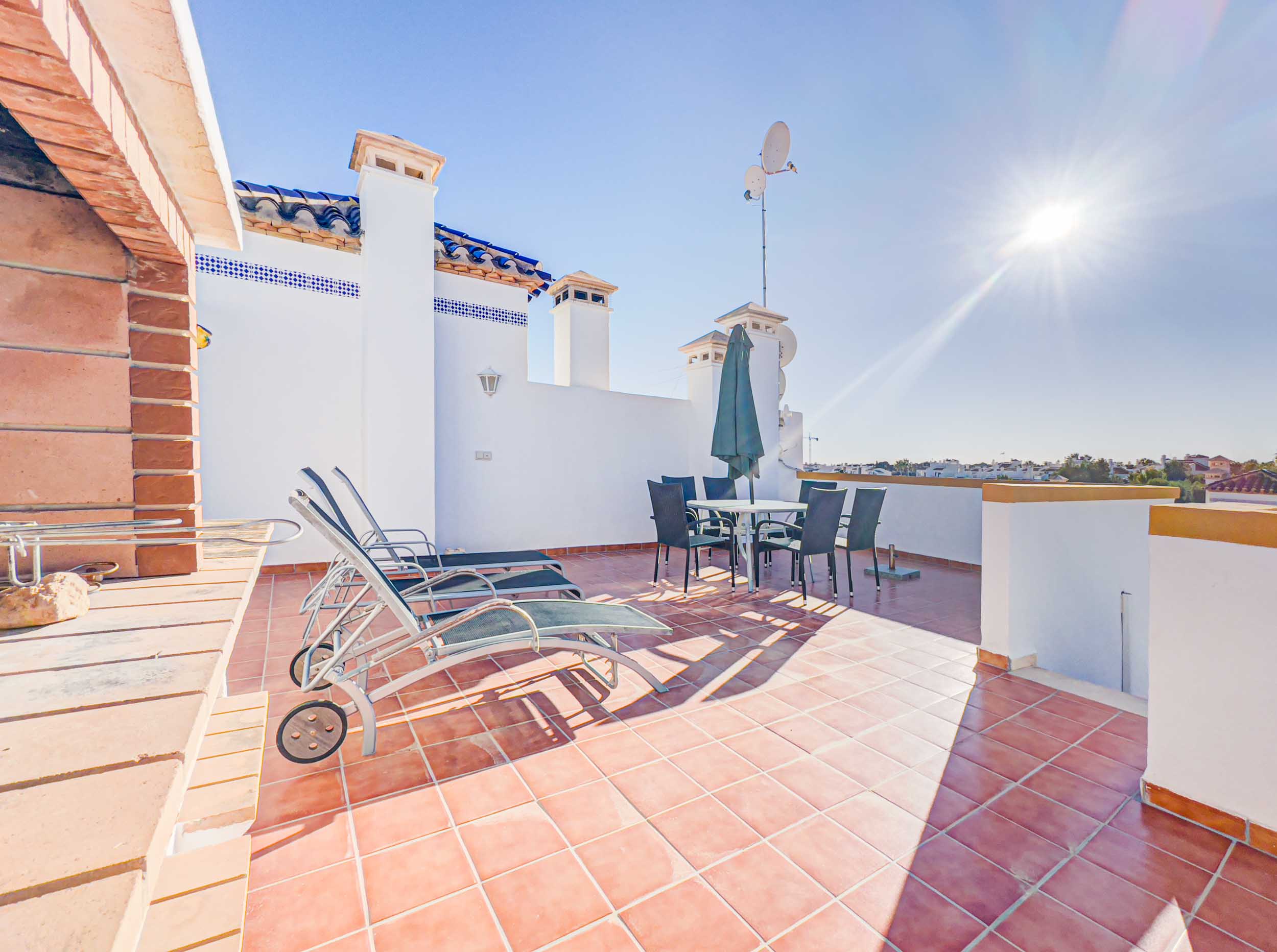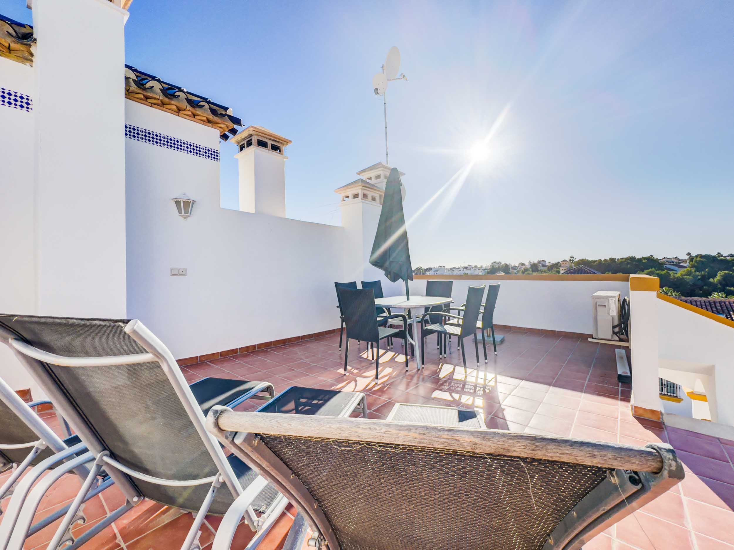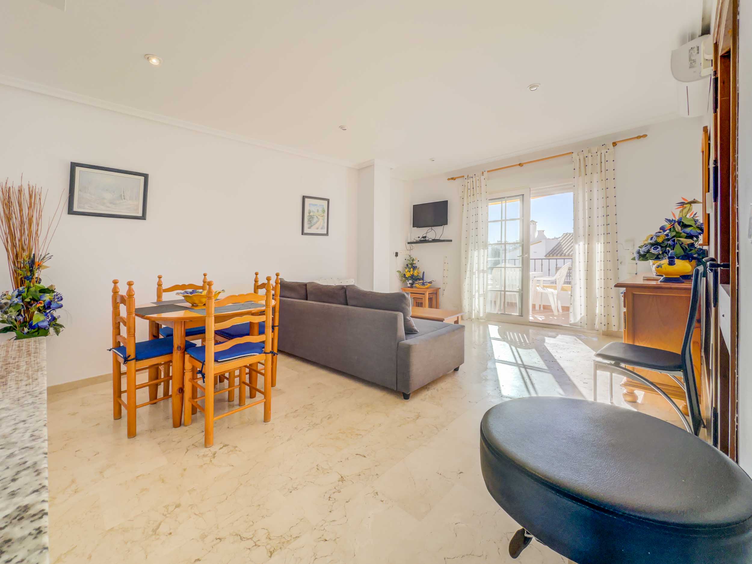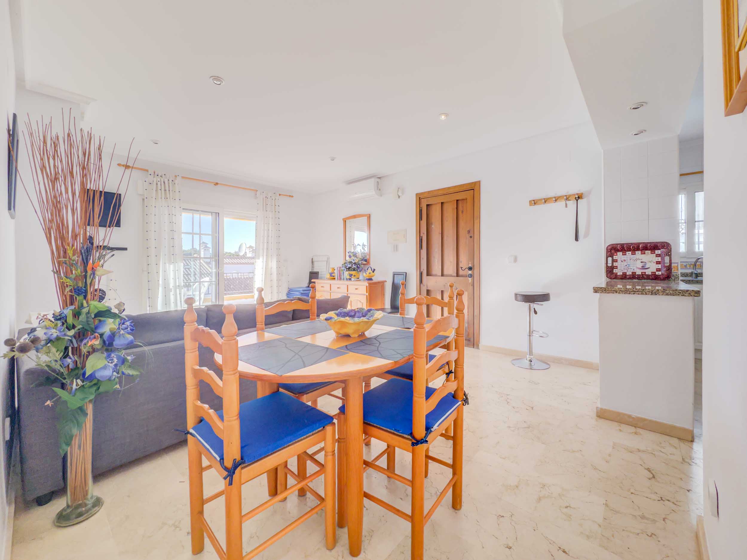 Lejligheden i bydelen Los Dolses har 2 soveværelser og 2 badeværelser. Nyd en forfriskende drik på den meget brede private tagterrasse på ca. 75 kvadratmeter.