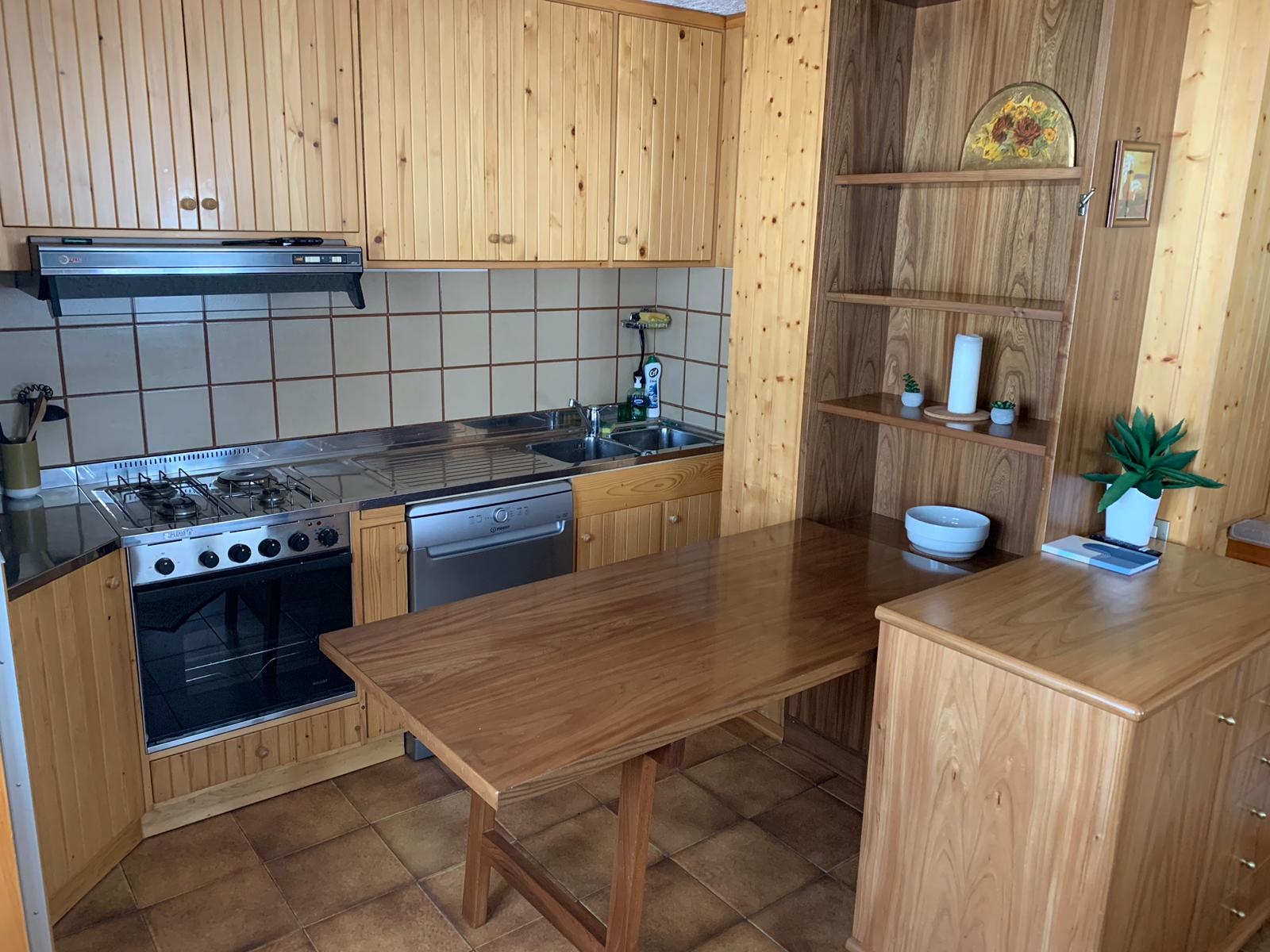 Køkkenet mangler bedre belysning men er vel udrustet. Lejligheder virker godt i forbindelse med ski ferie.